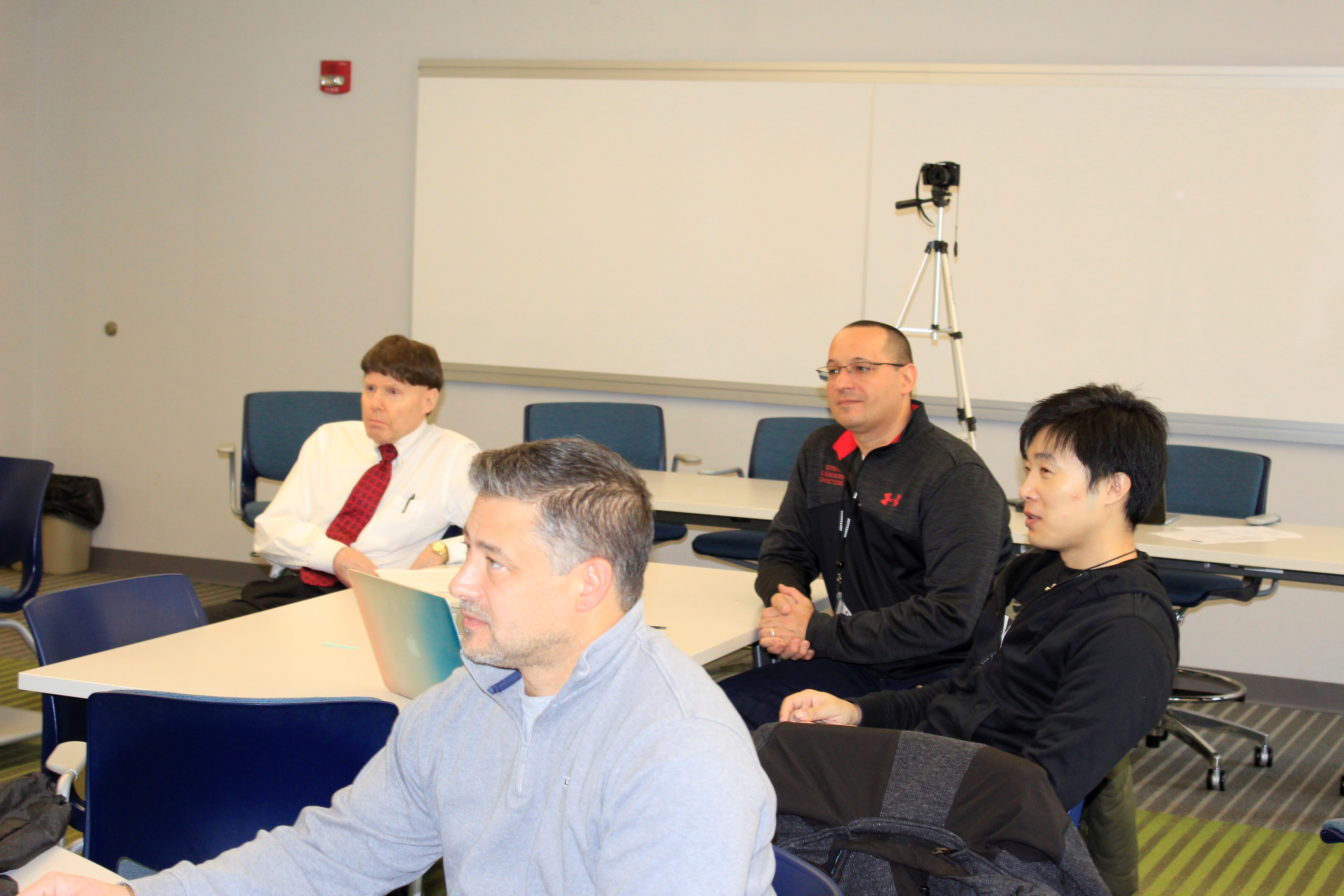 Class members from both courses also contribute as discussants to others’ presentations providing critical evaluations, posing questions for discussion and suggesting constructive ways to improve the work. (Below: David, Frank Rivello, Raul, and Nick)